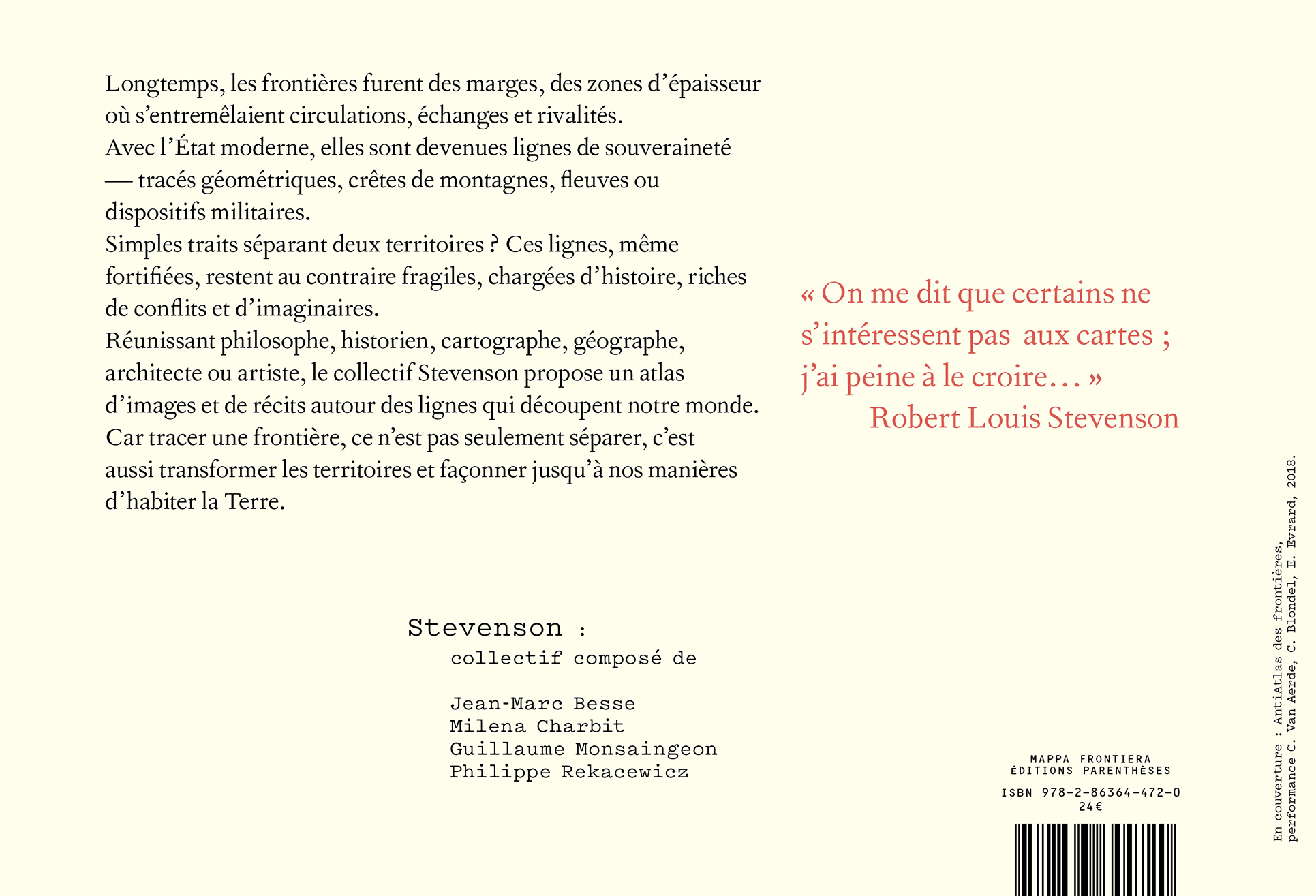 Réunissant philosophe, historien, cartographe, géographe, architecte ou artiste, le collectif Stevenson propose un atlas d’images et de récits autour des lignes qui découpent notre monde.
