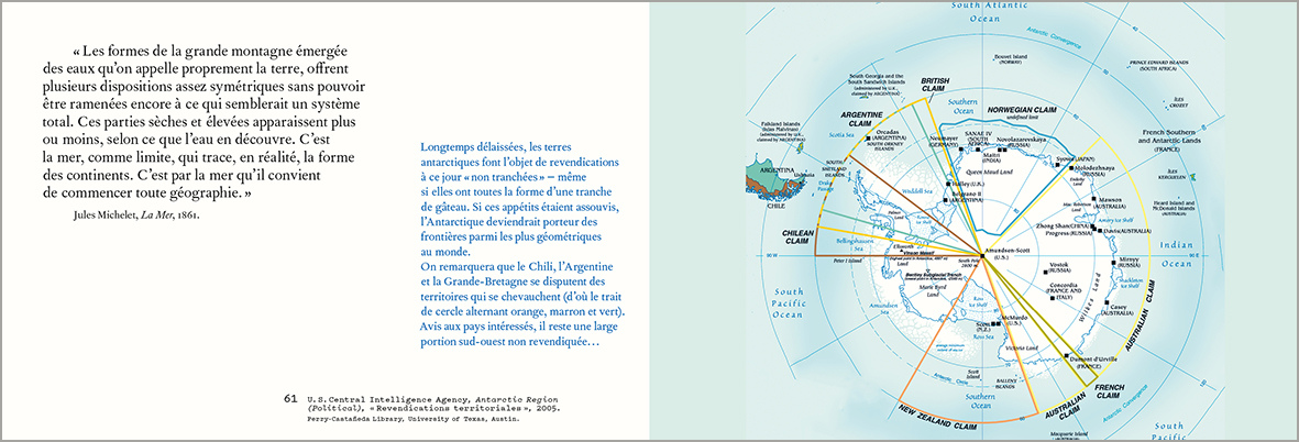 Textes de : Robert Louis Stevenson, Nicolas de Nicolay, Cesare Pavese, Uri Avnery, Wassily Kandinsky, Paul Klee, Frederick Jackson Turner, Gloria Anzaldúa, René Descartes, René Thom, Olivier Rolin, Jules Claretie, Barbara Cassin, Virginia Woolf, Georg Simmel, Isabelle Heyman Degand, Vauban, Ernst Jünger, Pierre Deffontaines, Robert Frost, Ovide, John R. Searle, Édouard Glissant, Onésime Reclus, Elio Vittorini, Jean-Jacques Rousseau, Pierre Larousse, Karl‑Markus Gauss, Claudio Magris, Régis Debray, Claudie Huzinger, Conrad Malte‑Brun, Giorgio Caproni, Jules Michelet, Chateaubriand, Wim Wenders, Erwin Raisz, Carl Schmitt, Anna Milani, Céline, Carlos Batista, Achille Mbembe, Paul Celan, Christian Seignobos, Emmanuel de Martonne, Rodolphe Töpffer, Hannah Arendt, Dervla Murphy, Benjamin Duinat, J.-B. Pontalis, Joseph Roth, James R. Akerman, Benjamin Werner, Franz Kafka, Bertolt Brecht, Homère.