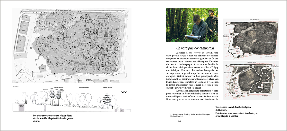 Enfin « Le verger (fructifier) » regroupe les récits de projets de maturation, certains initiés précédemment, où s’inventent des exercices originaux du métier, des méthodes et des manières de durer… en se transformant. Ces évolutions impliquent une diversité croissante de partenaires qui continuent à appeler et apprécier les interventions des professionnels du paysage.
